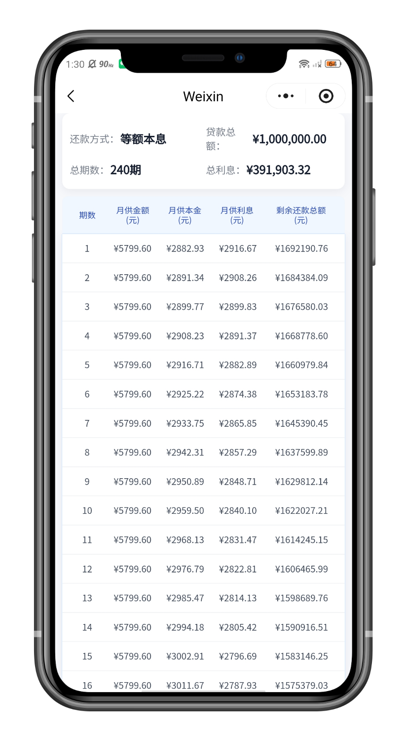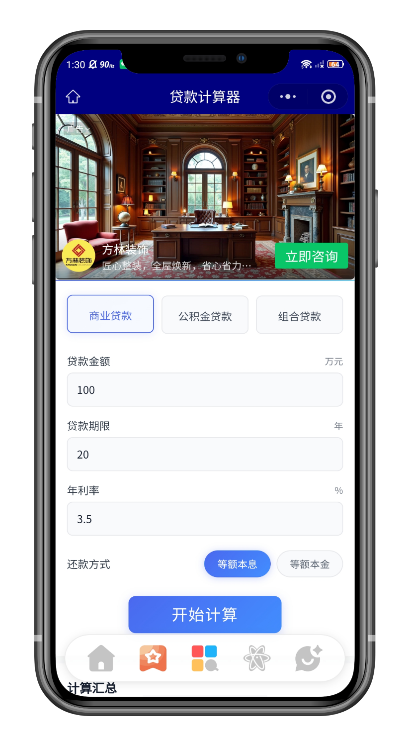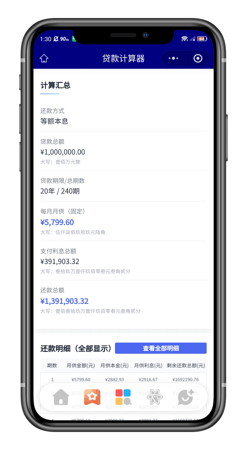 🍁 贷款计算器:【商业贷款】-【公积金贷款】-【组合贷款】支持查看30年还款计算数据